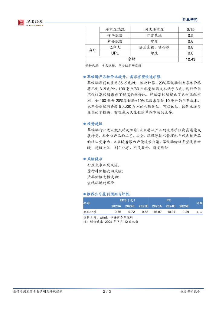 华安证券:基础化工:巴斯夫计划关停草铵膦基地,行业格局有望逐步重塑.pdf
