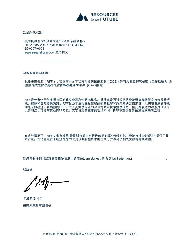 未来能源研究所:对能源部气候工作组题为“气候变化、经济和社会碳成本”的报告第11章的评论对温室气体排放对美国气候影响的关键性评估.pdf