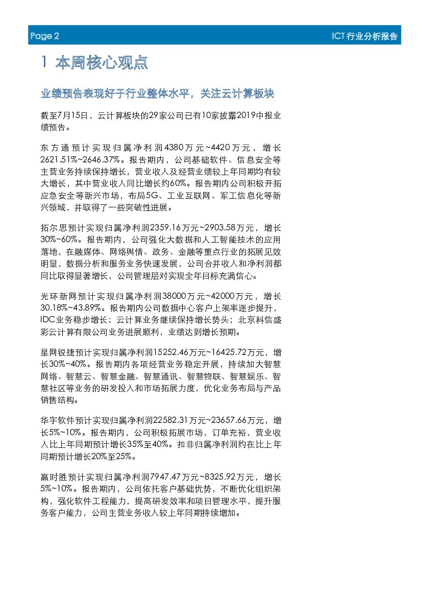 首创证券:ICT行业周报:业绩预告表现好于行业整体水平,关注云计算板块.pdf