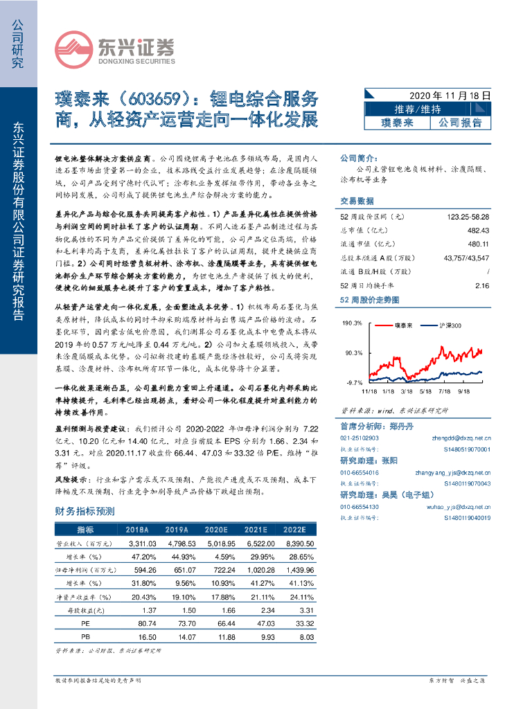 东兴证券:璞泰来(603659)-锂电综合服务商,从轻资产运营走向一体化发展.pdf