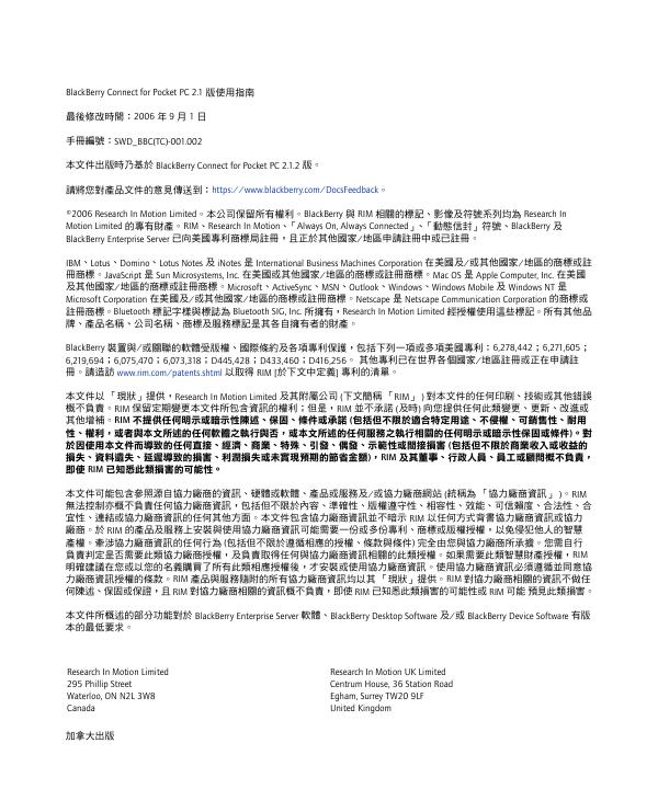黑莓 Connect for Pocket PC 2.1 版 使用指南.pdf