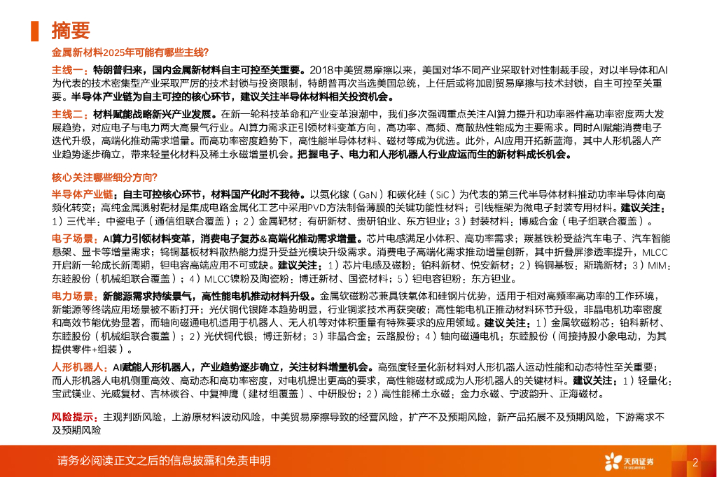 天风证券:金属新材料行业2025年度策略:材料赋能新质生产力.pdf