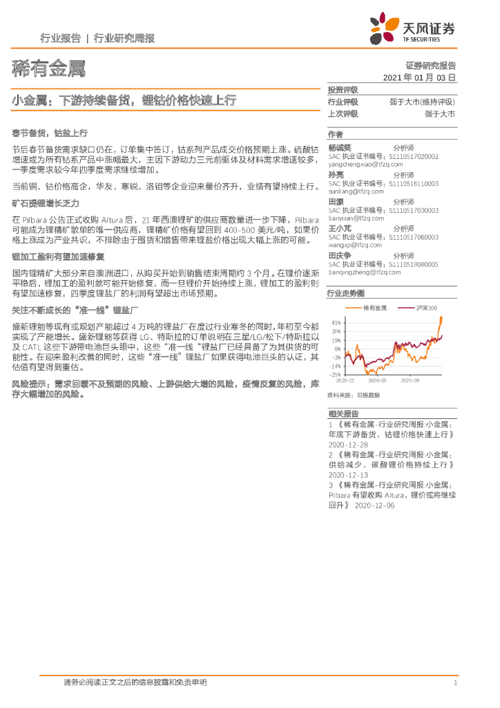 天风证券:稀有金属行业研究周报:小金属:下游持续备货,锂钴价格快速上行.pdf