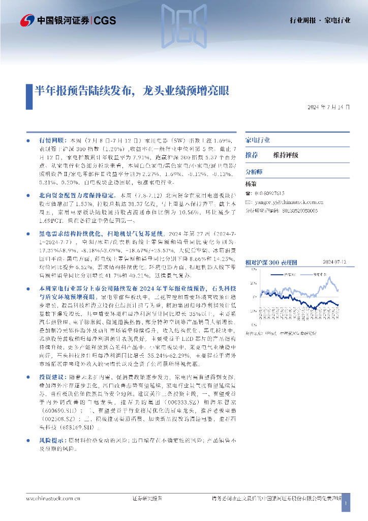 中国银河:家电行业:半年报预告陆续发布,龙头业绩预增亮眼.pdf