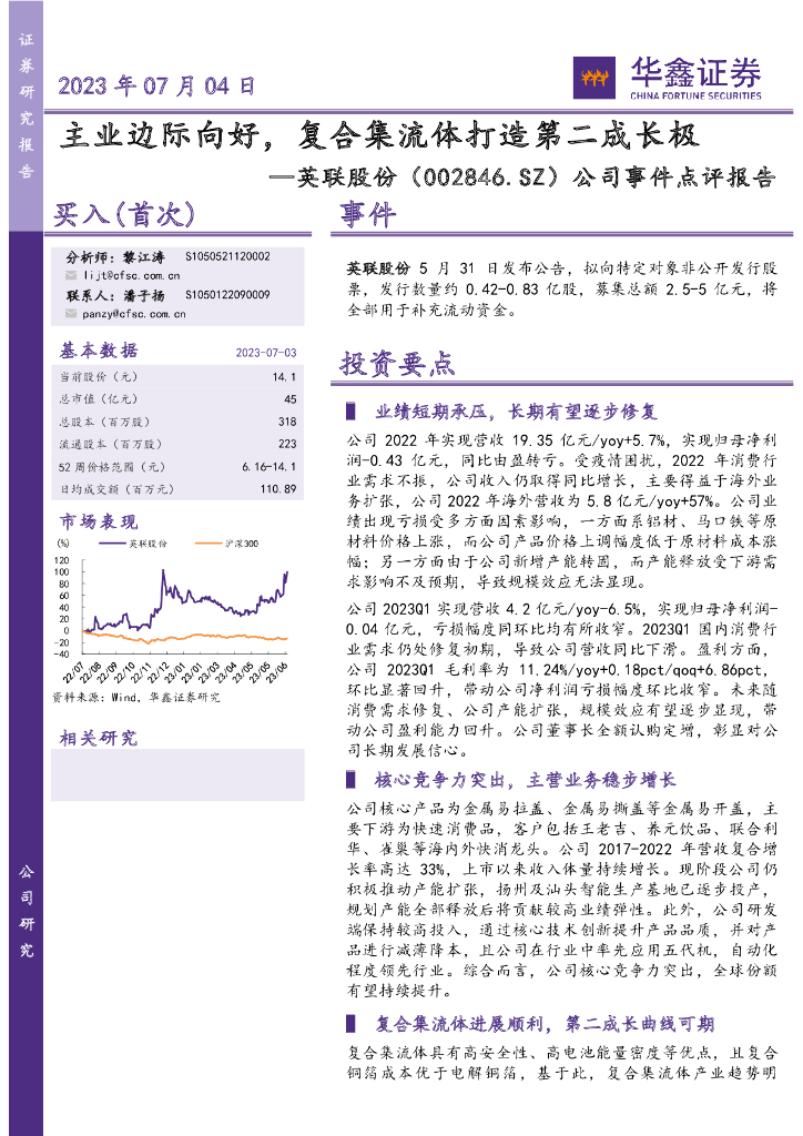 华鑫证券:英联股份(002846)-公司事件点评报告:主业边际向好,复合集流体打造第二成长极.pdf