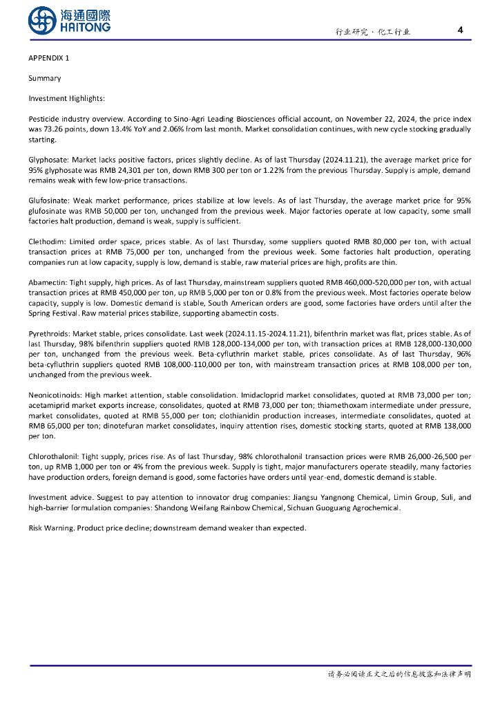 海通国际:化工行业周报:百菌清、阿维菌素等产品市场供应紧张,价格上涨.pdf