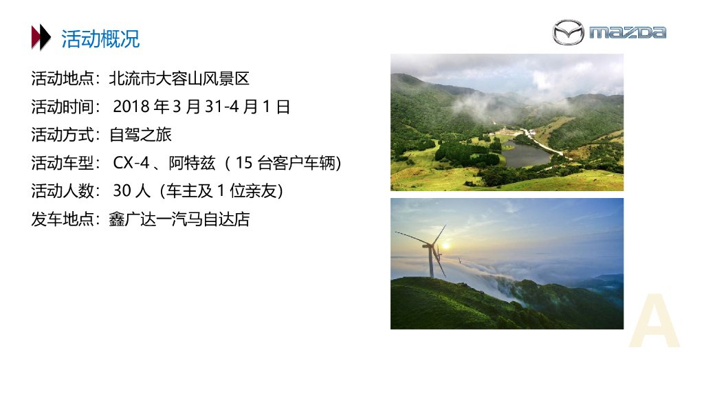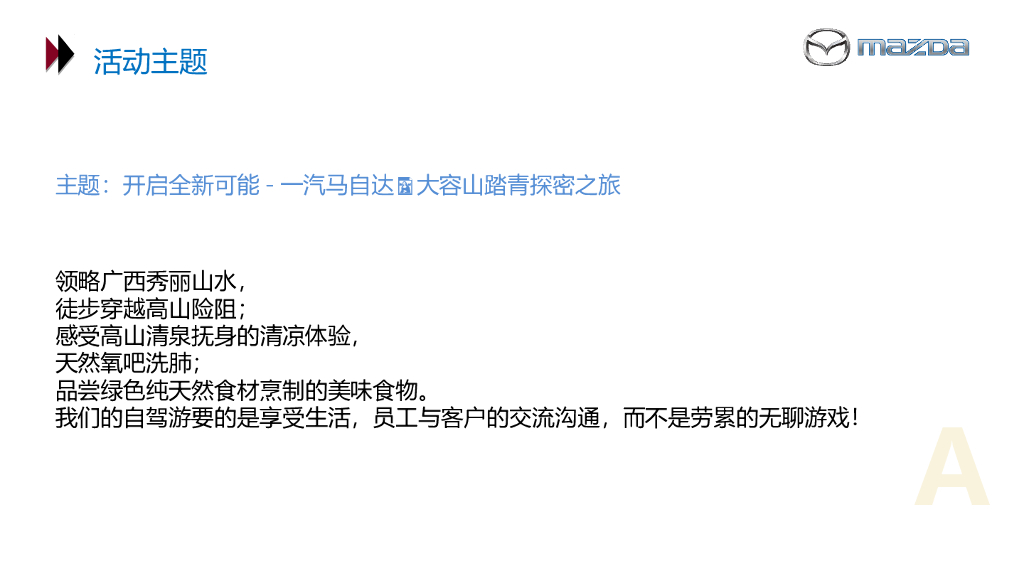 2018一汽马自达大容山踏青探密之旅活动策划案.ppt