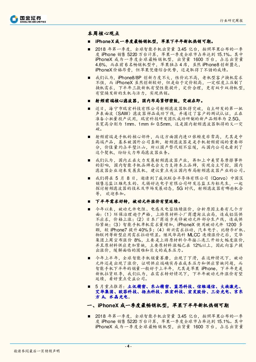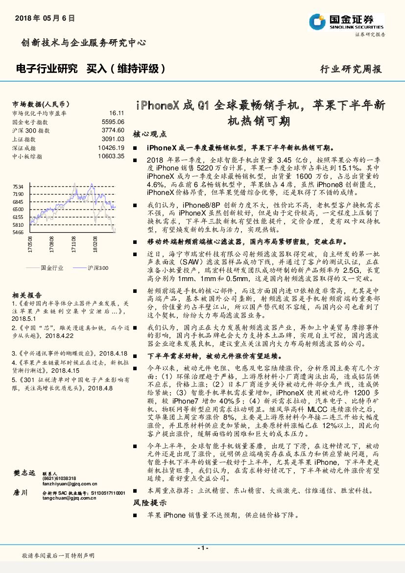 国金证券:电子行业研究:iPhoneX成Q1全球最畅销手机,苹果下半年新机热销可期.pdf