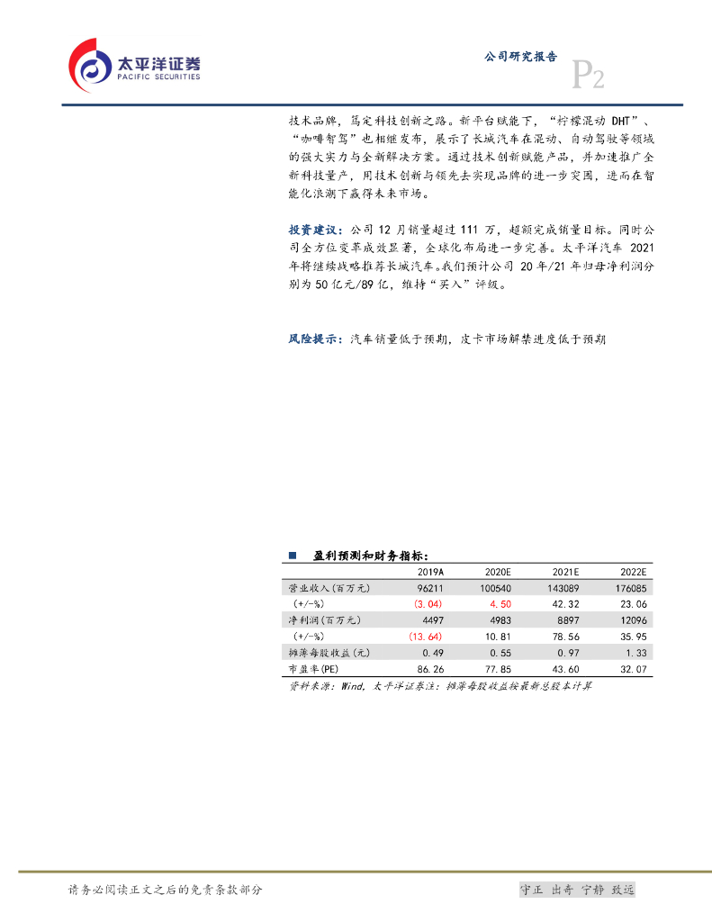太平洋证券:长城汽车(601633)-年度销量突破新高,创变突围智赢未来(太平洋汽车2021年战略推荐).pdf