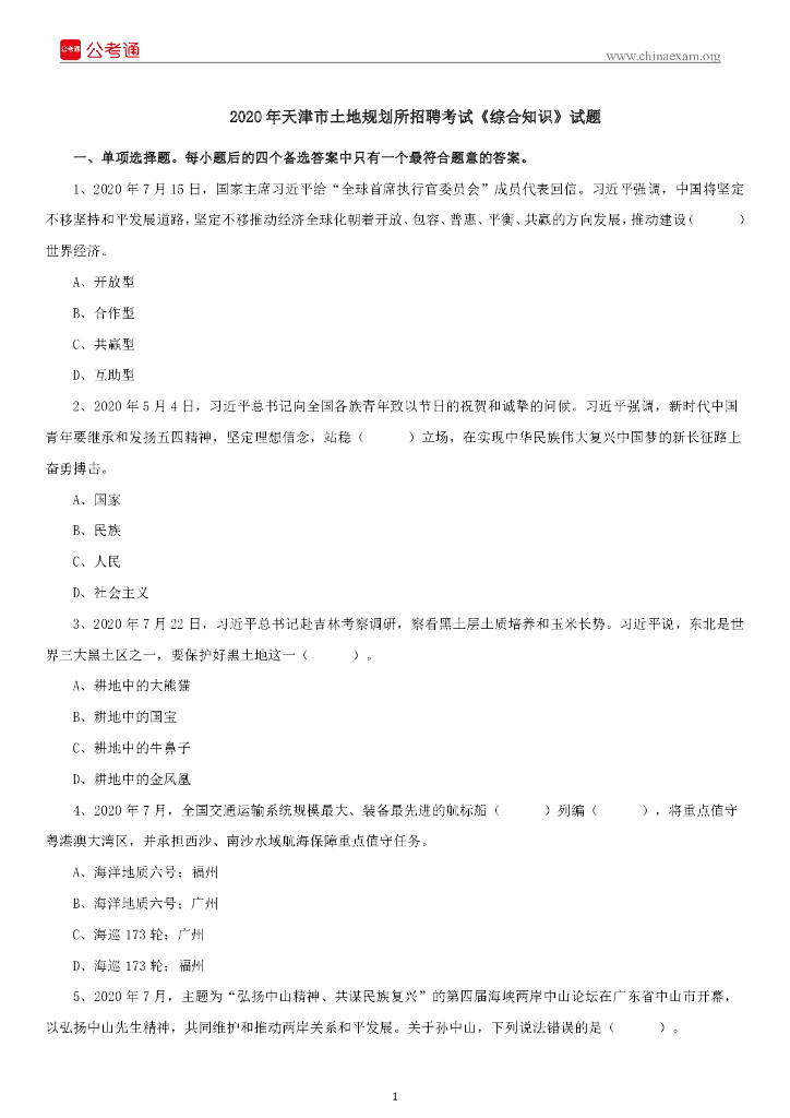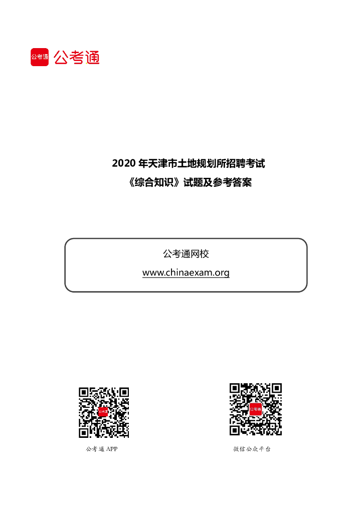 2020年天津市土地规划所招聘考试《综合知识》试题.pdf