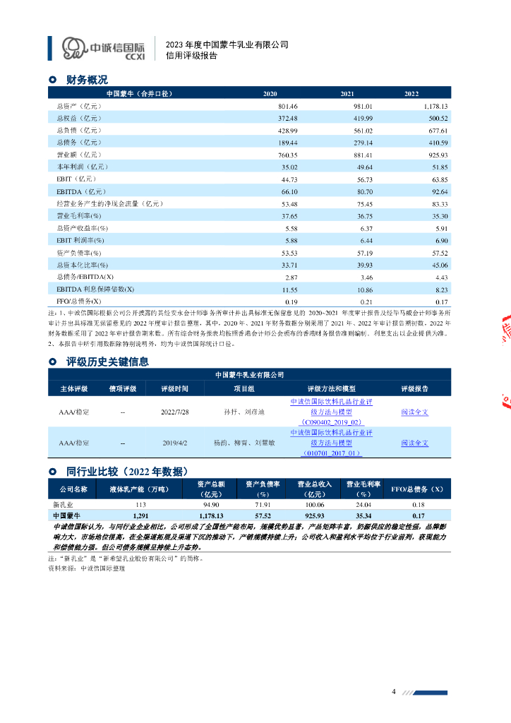 中诚信:2023年度中国蒙牛乳业有限公司信用评级报告.pdf