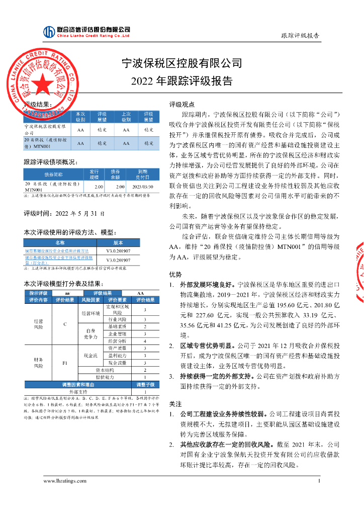 联合资信:宁波保税区控股有限公司2022年跟踪评级报告.pdf