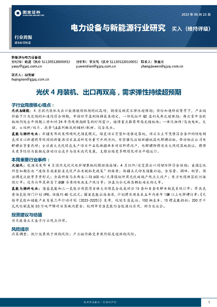 国金证券:电力设备与新能源行业研究:光伏4月装机、出口再双高,需求弹性持续超预期.pdf