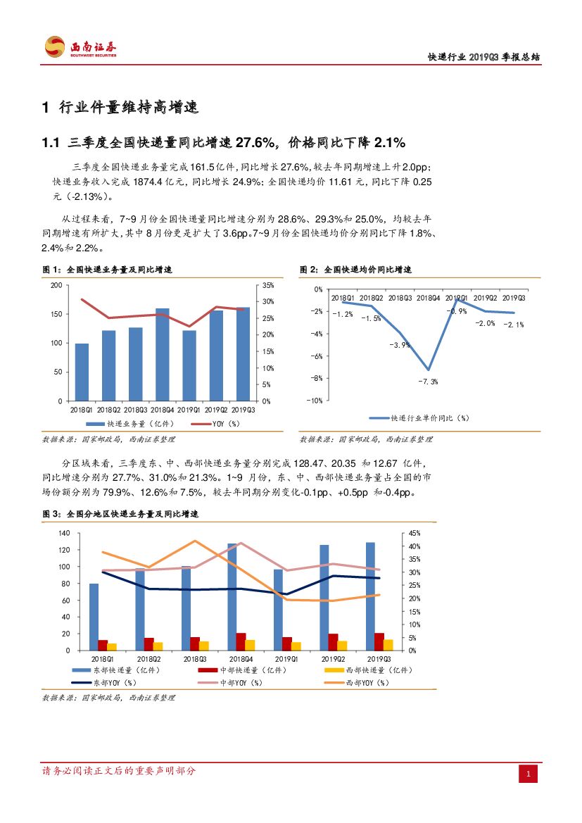 西南证券:快递行业2019Q3季报总结:业绩分化,韵达估值已具备吸引力.pdf
