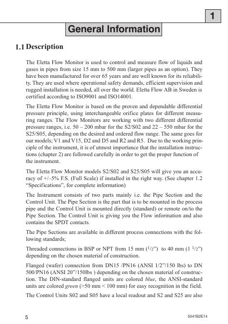 Eletta Flow Monitor S2, S25, S02和S05型号安装和操作手册.pdf
