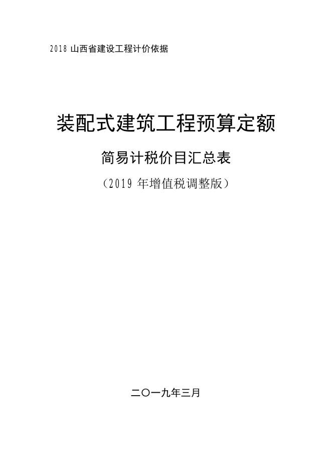 山西省装配式建筑工程预算定额 简易计税价目汇总表(2019年增值税调整版).pdf