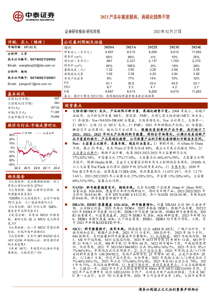 中泰证券:兆易创新(603986)-2023产品丰富度提高,高端化趋势不变.pdf