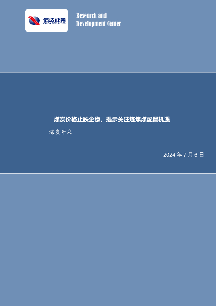 信达证券:煤炭价格止跌企稳,提示关注炼焦煤配置机遇煤炭开采.pdf