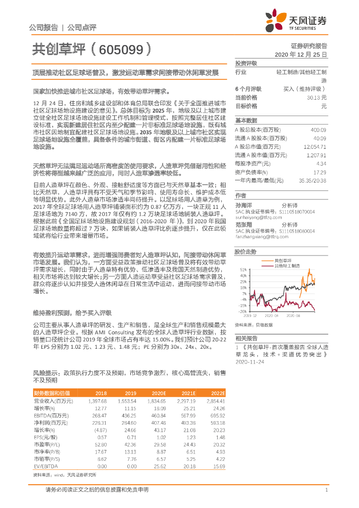 天风证券:共创草坪(605099)-顶层推动社区足球场普及,激发运动草需求间接带动休闲草发展.pdf