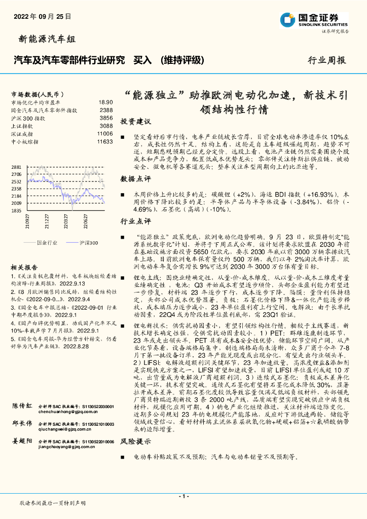 国金证券:汽车及汽车零部件行业研究周报:“能源独立”助推欧洲电动化加速,新技术引领结构性行情.pdf