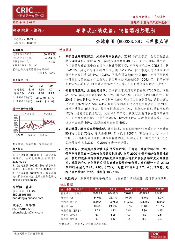 克而瑞证券:金地集团(600383)-三季报点评:单季度业绩改善,销售端增势强劲.pdf