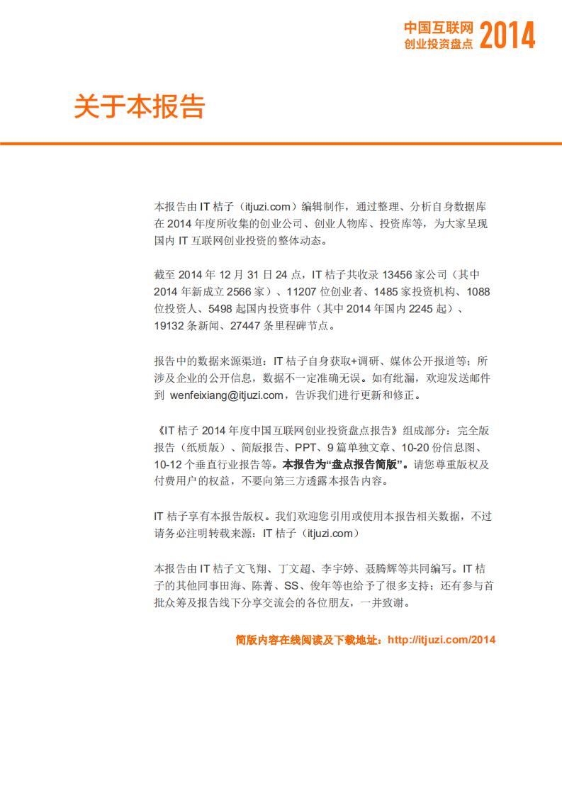 IT桔子:2014中国互联网创业投资年终盘点简版.pdf