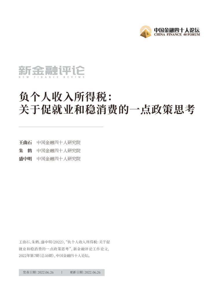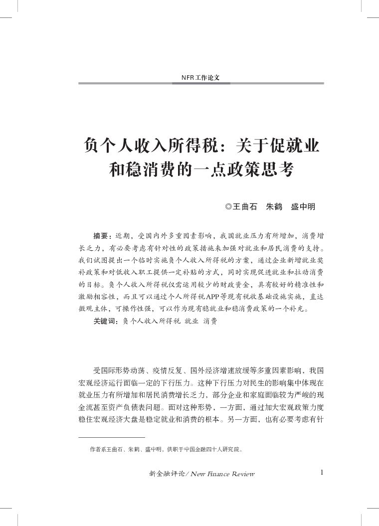 金融四十人论坛:负个人收入所得税:关于促就业和稳消费的一点政策思考.pdf
