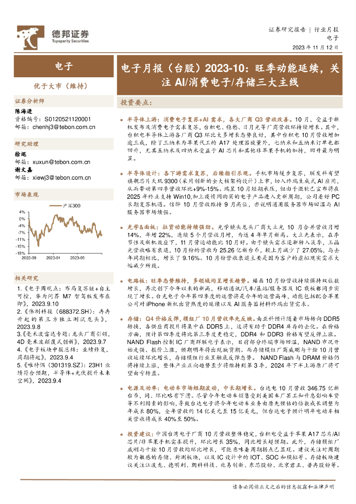 德邦证券:电子月报(台股)2023-10:旺季动能延续,关注AI/消费电子/存储三大主线.pdf