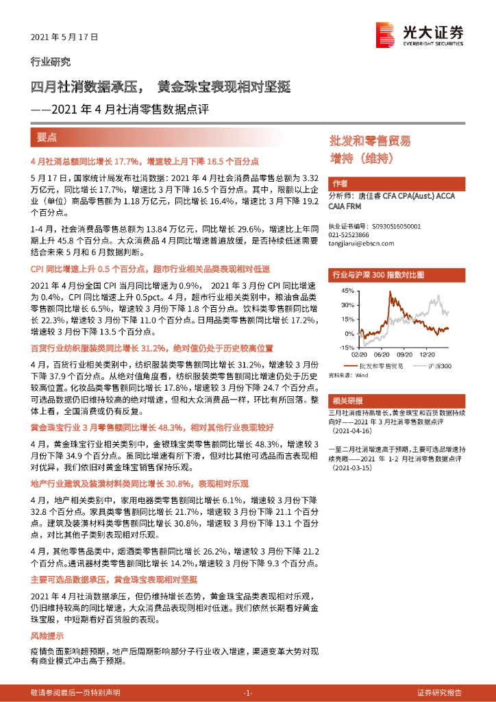 光大证券:2021年4月社消零售数据点评:四月社消数据承压,黄金珠宝表现相对坚挺.pdf
