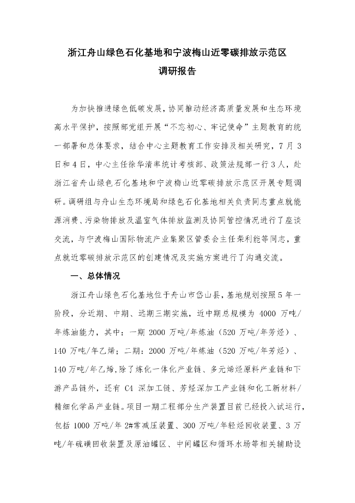 国家应对气候变化战略研究和国际合作中心:浙江舟山绿色石化基地和宁波梅山近零碳排放示范区调研报告.pdf
