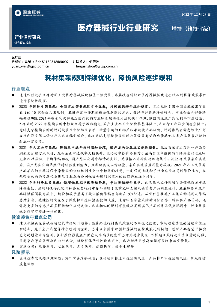 国金证券:医疗器械行业深度研究:耗材集采规则持续优化,降价风险逐步缓和.pdf