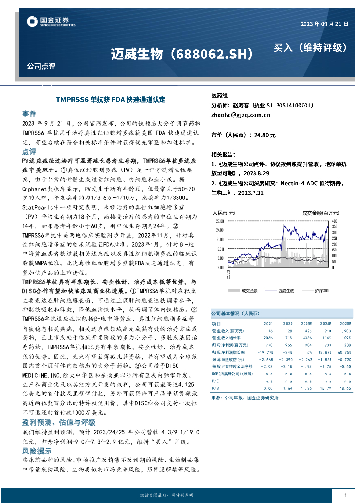 国金证券:迈威生物(688062)-TMPRSS6单抗获FDA快速通道认定.pdf