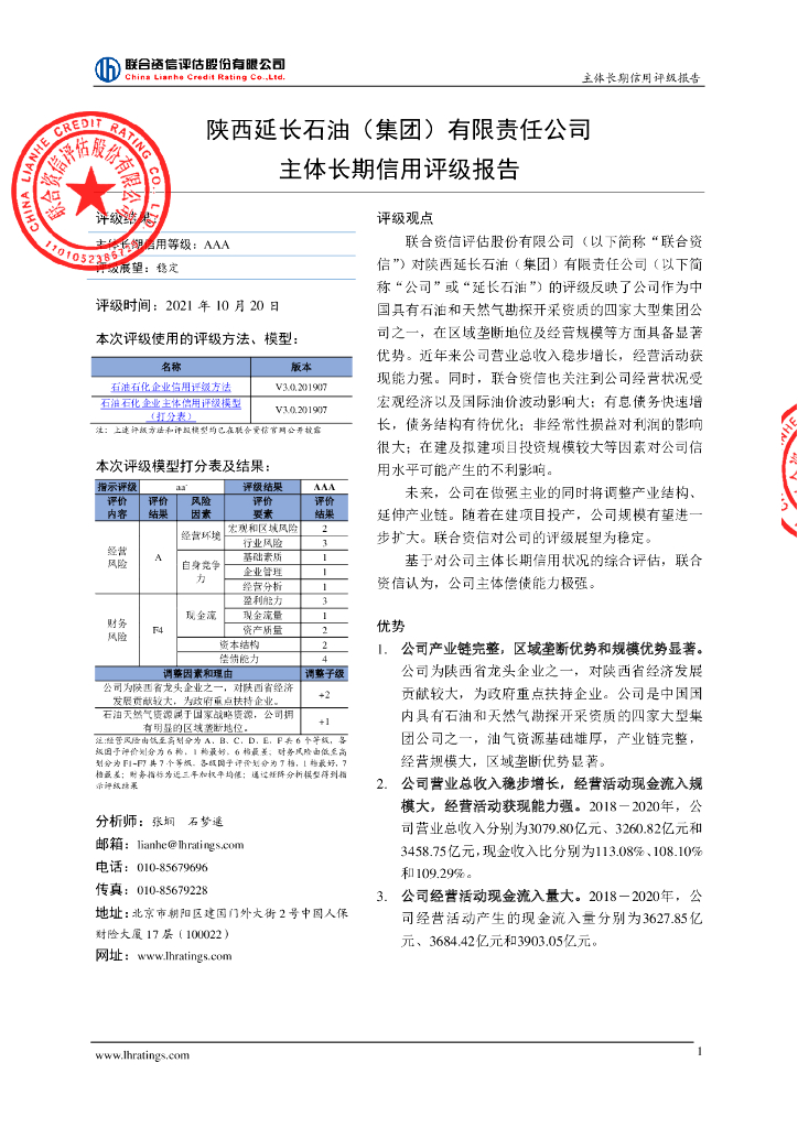 联合资信:陕西延长石油(集团)有限责任公司主体信用评级报告及跟踪评级安排.pdf