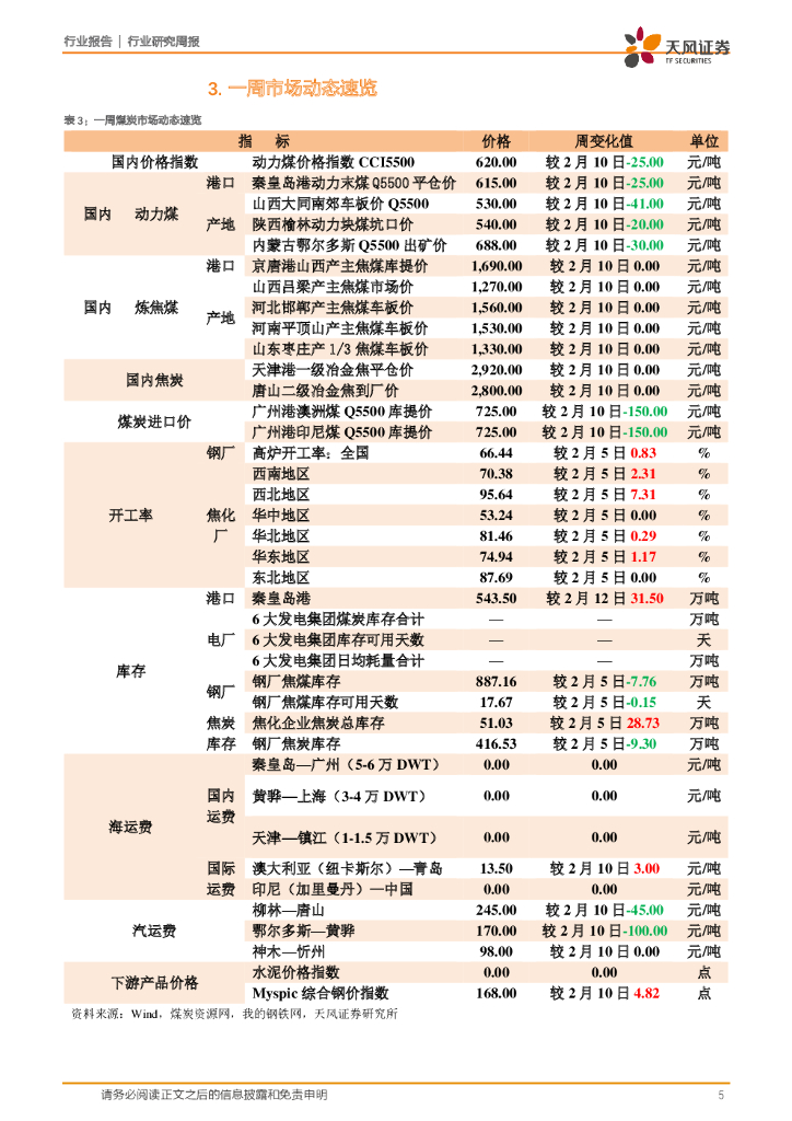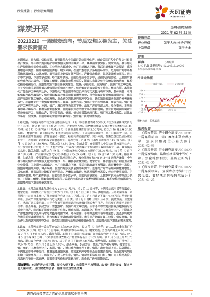 天风证券:煤炭开采:一周煤炭动向:节后双焦以稳为主,关注需求恢复情况.pdf