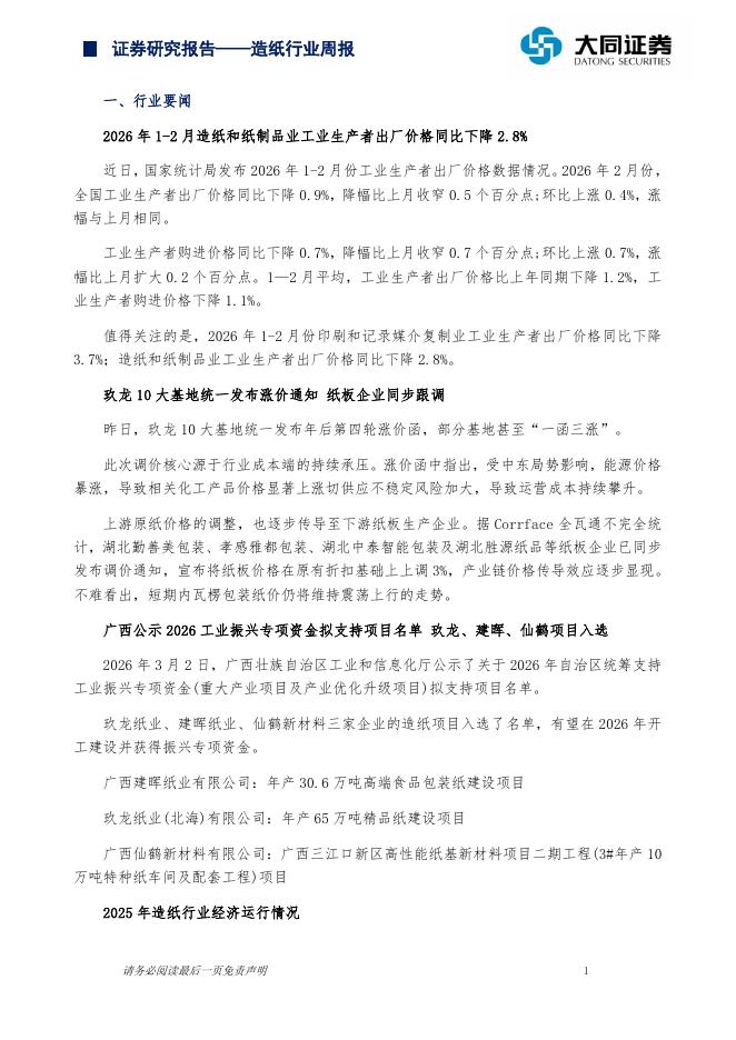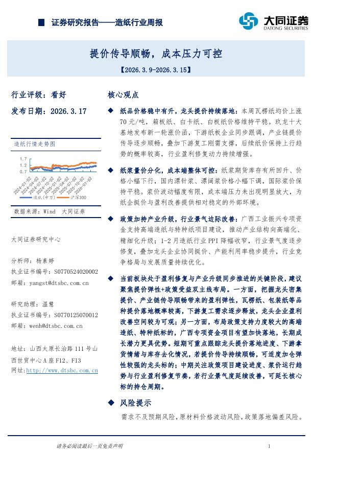 大同证券:造纸行业周报:提价传导顺畅,成本压力可控.pdf