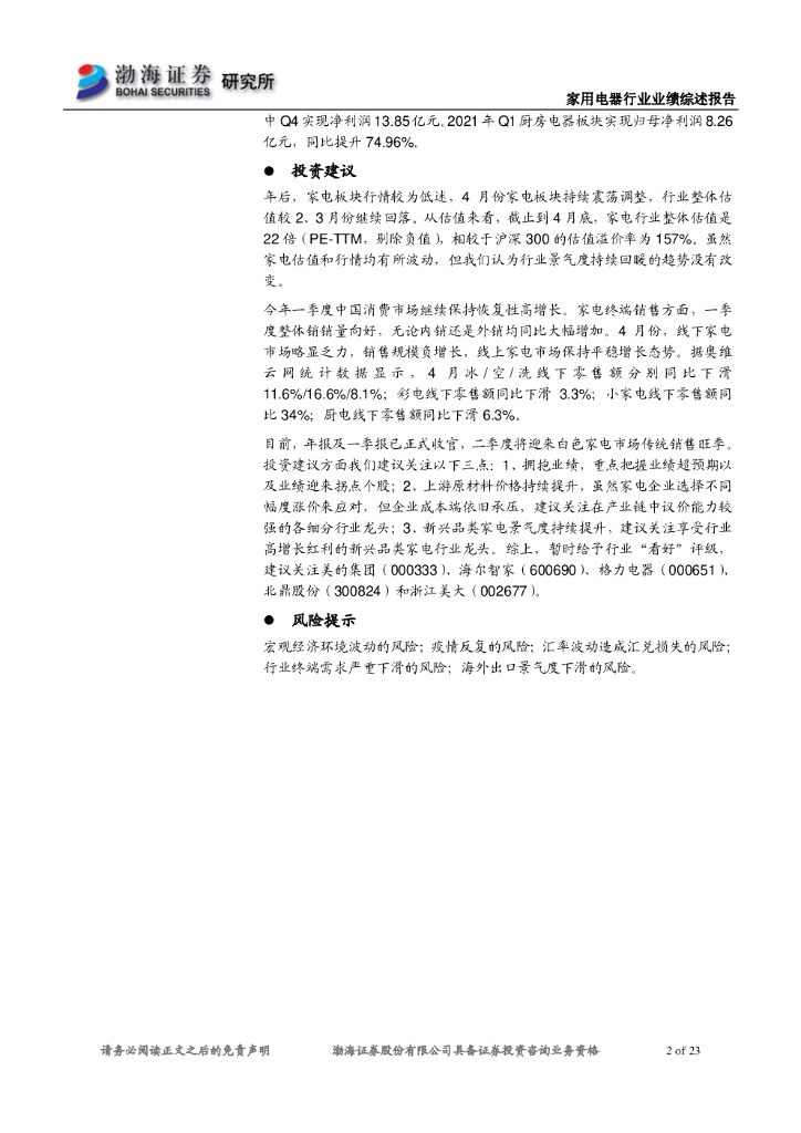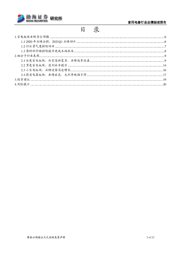 渤海证券:家电行业2020年年报及2021年一季报综述:业绩企稳回升,风雨过后期待彩虹.pdf