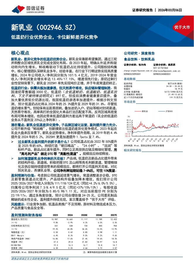 国信证券:新乳业(002946)-低温奶行业优势企业,卡位新鲜差异化竞争.pdf