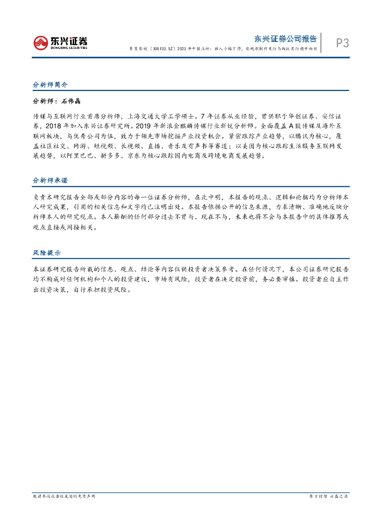 东兴证券:华策影视(300133)-2023年中报点评:收入小幅下滑,电视剧制作发行与版权发行稳中向好.pdf