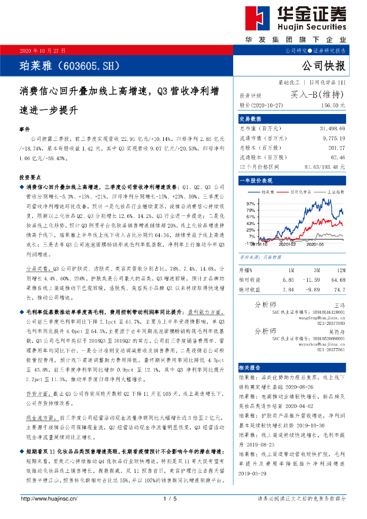 华金证券:珀莱雅(603605)-消费信心回升叠加线上高增速,Q3营收净利增速进一步提升.pdf