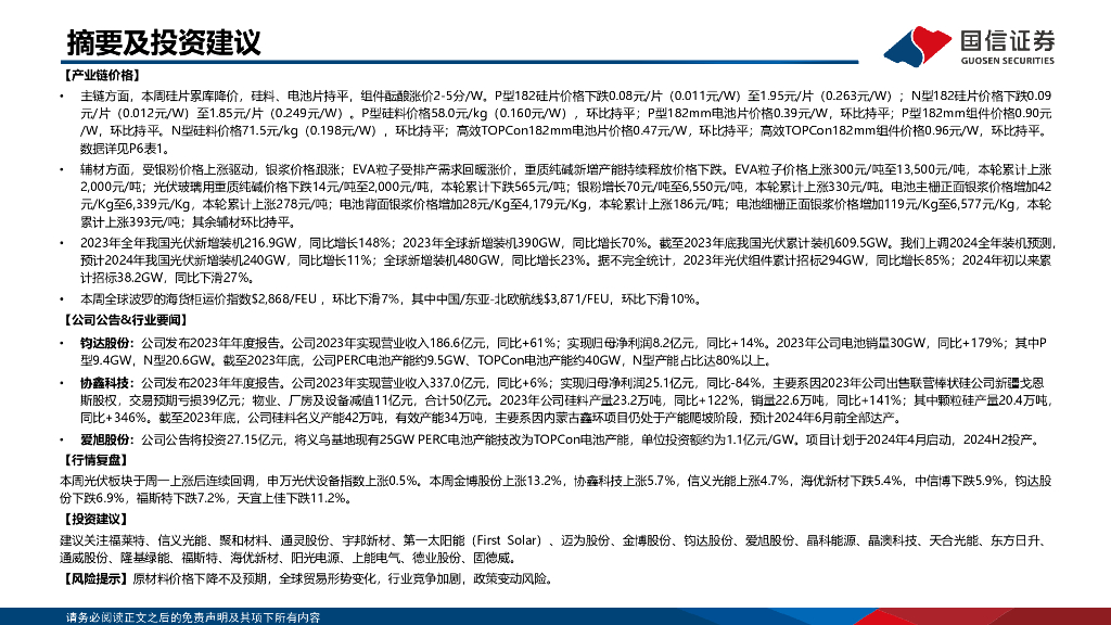 国信证券:光伏产业链周评(3月第3周):硅片环节累库降价,胶膜顺价不畅利润承压.pdf