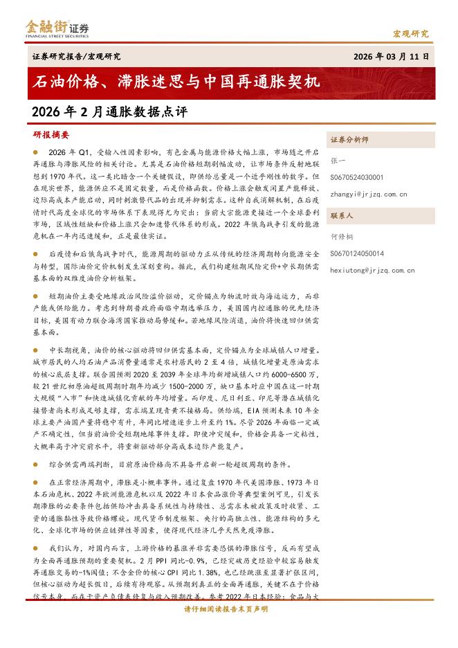 金融街证券:2026年2月通胀数据点评:石油价格、滞胀迷思与中国再通胀契机-260312.pdf