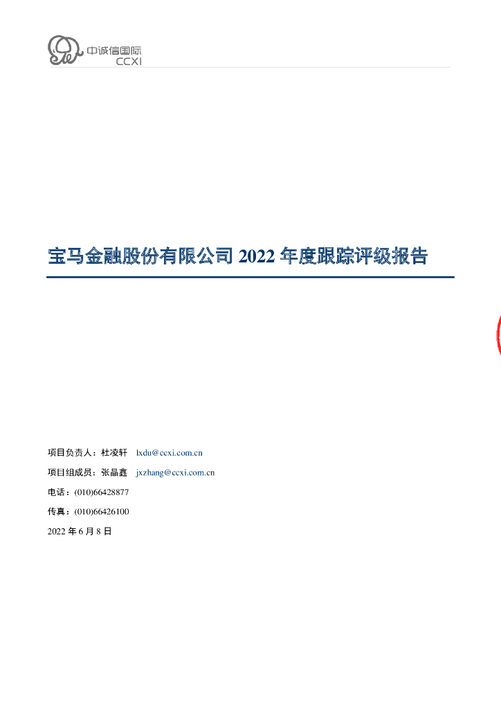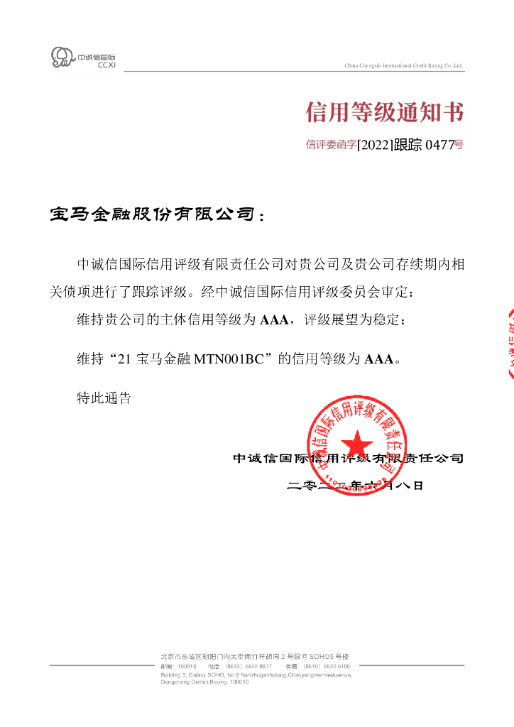 中诚信:宝马金融股份有限公司2022年度跟踪信用评级报告.pdf