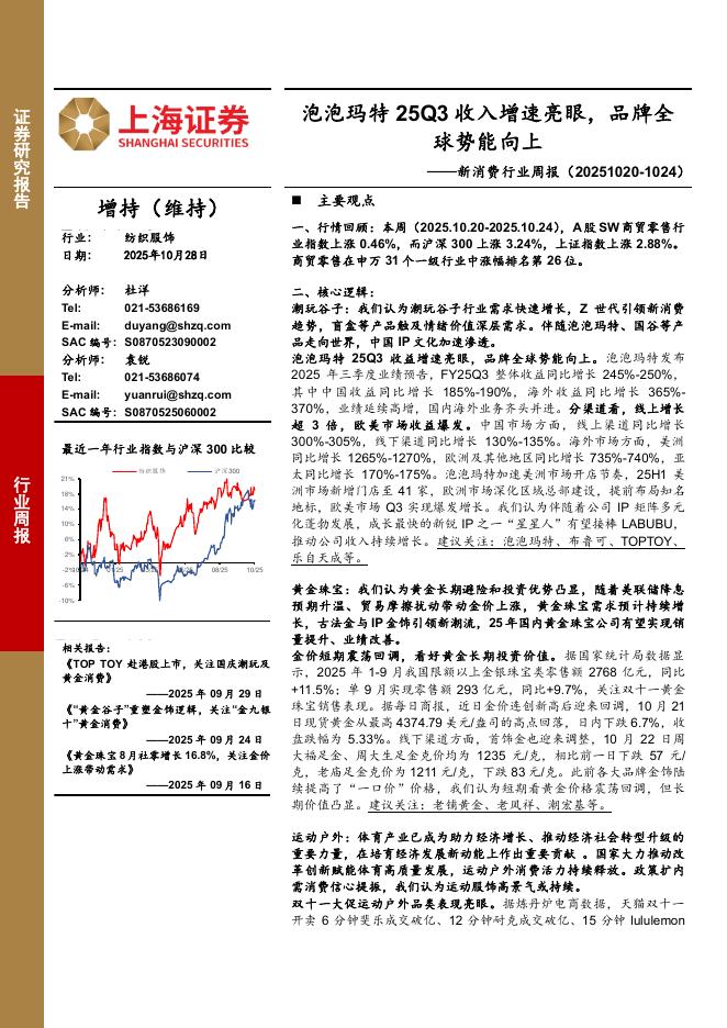 上海证券:新消费行业周报:泡泡玛特25Q3收入增速亮眼,品牌全球势能向上.pdf