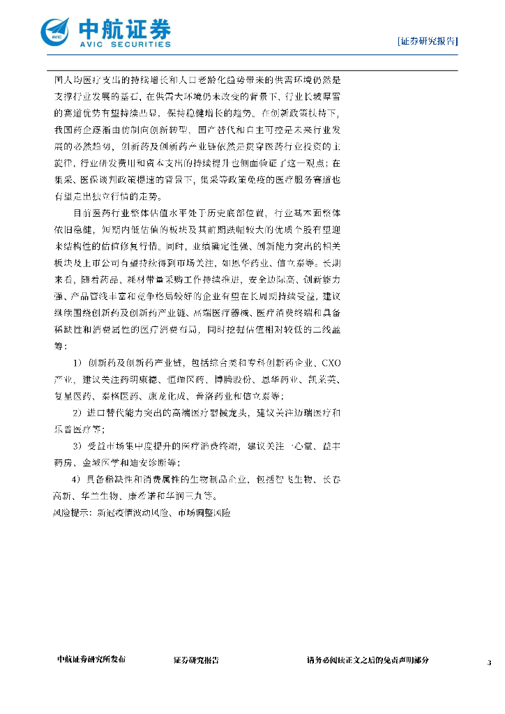 中航证券:医药生物行业周报:2022中报总结,稳中有增凸显韧性,关注低估值个股的修复机会.pdf