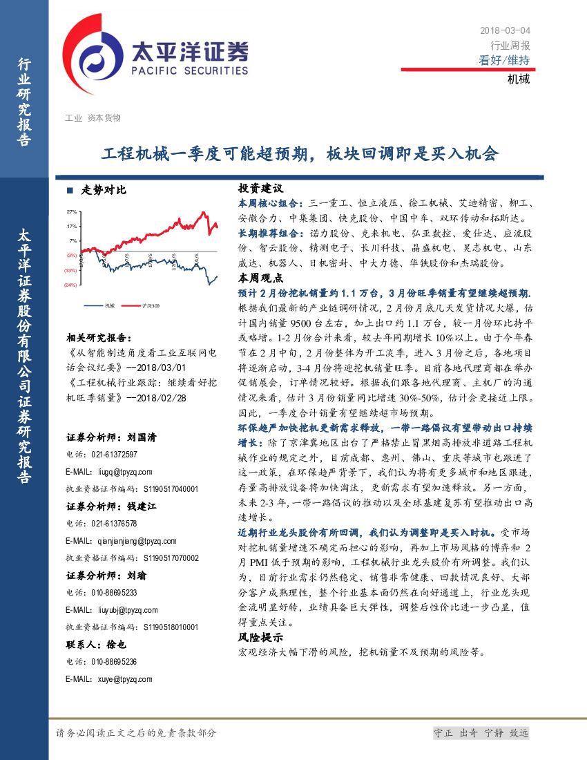 太平洋证券:机械行业周报:工程机械一季度可能超预期,板块回调即是买入机会.pdf