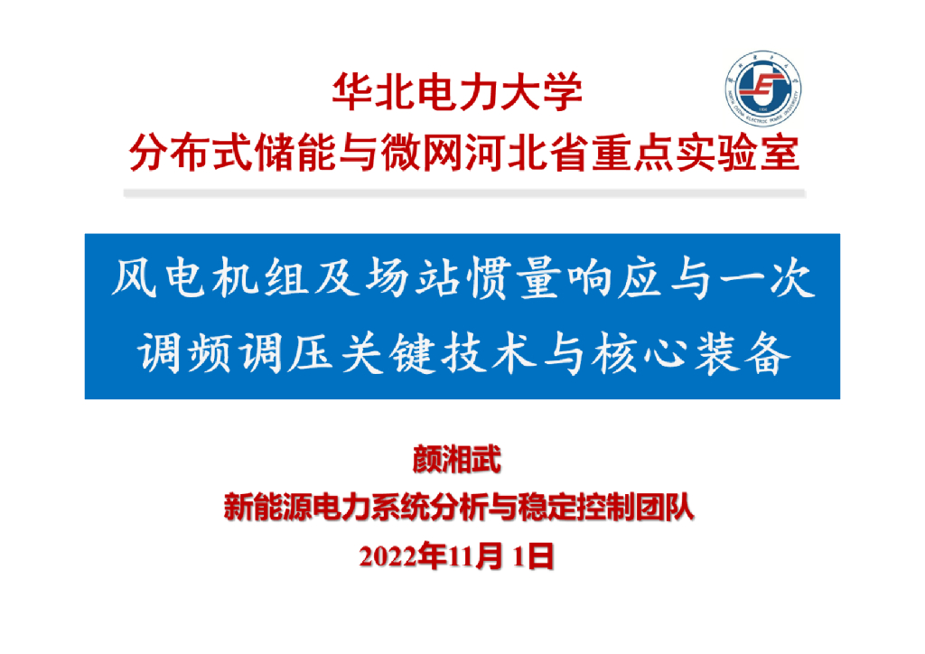 华北电力大学(颜湘武):风电机组及场站惯量响应与一次调频调压关键技术与核心装备.pdf