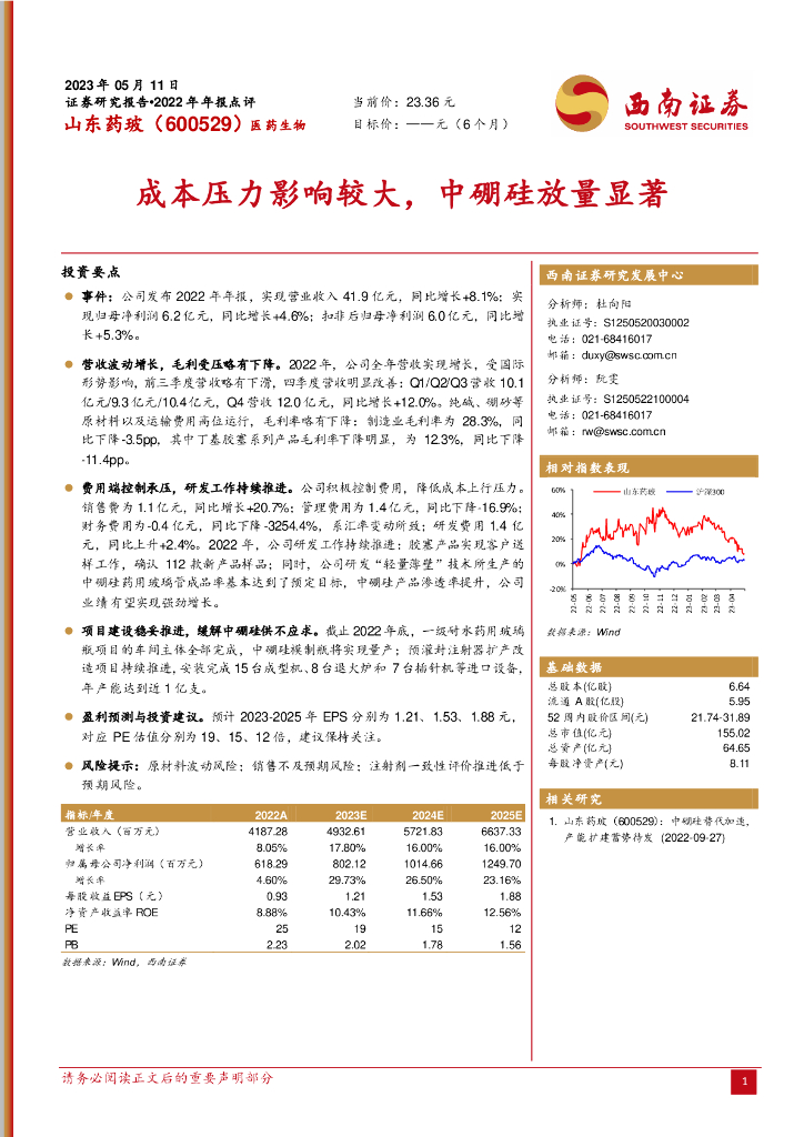 西南证券:山东药玻(600529)-成本压力影响较大,中硼硅放量显著.pdf