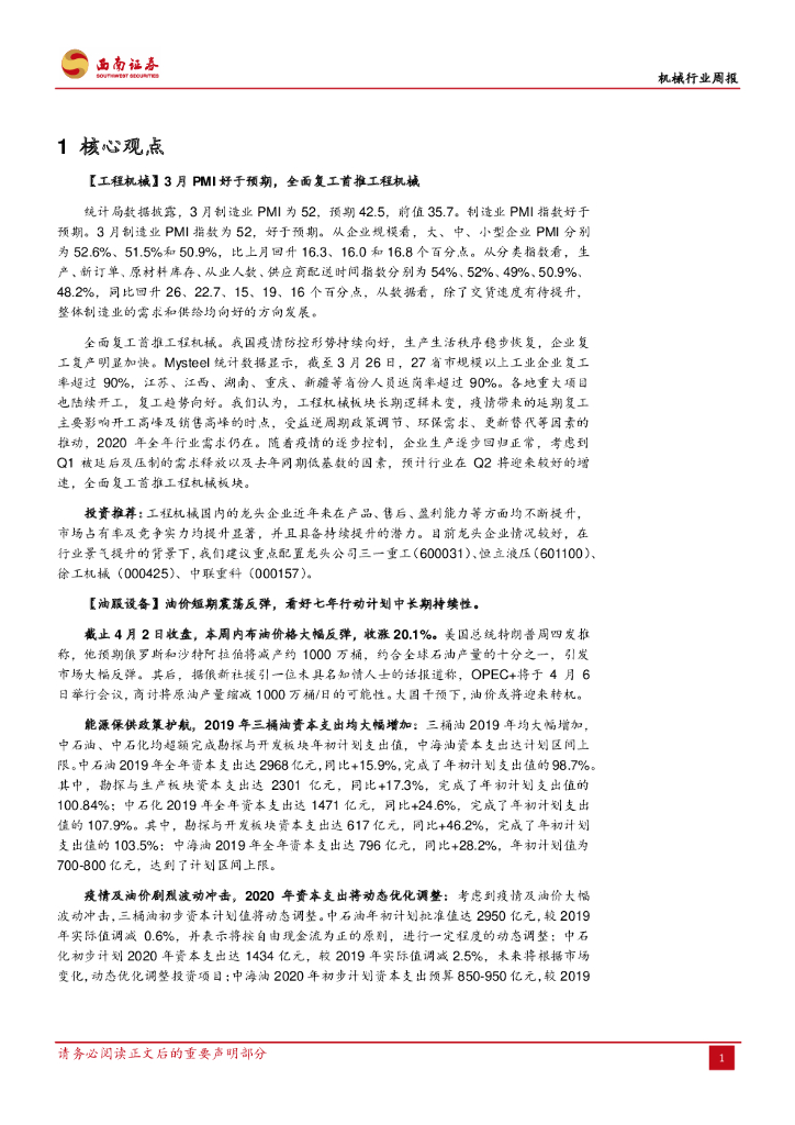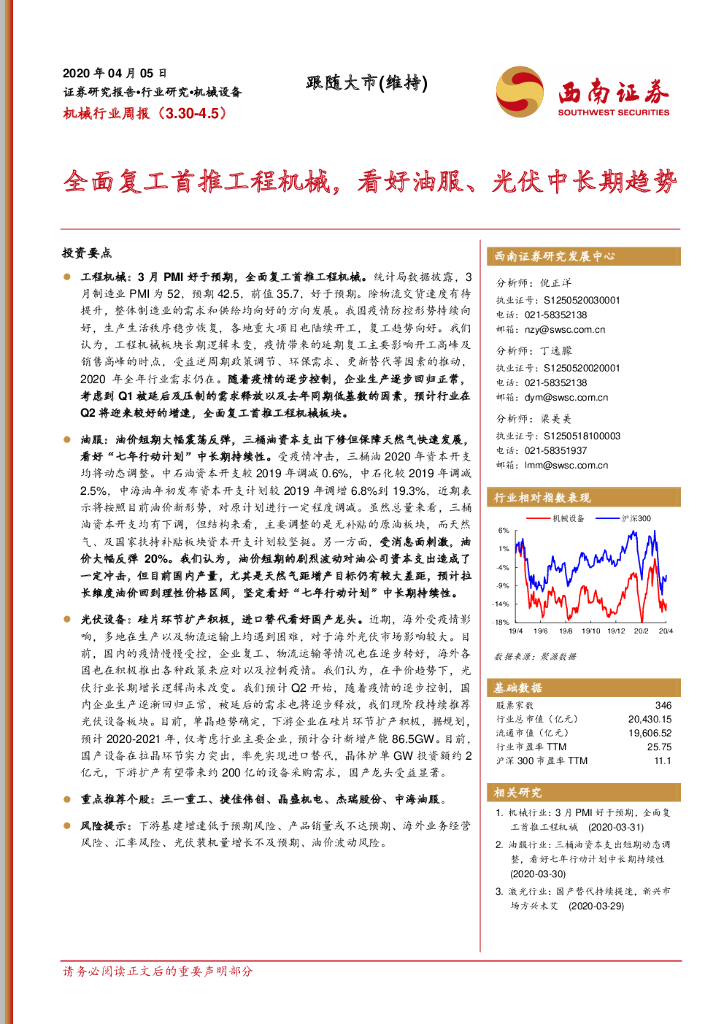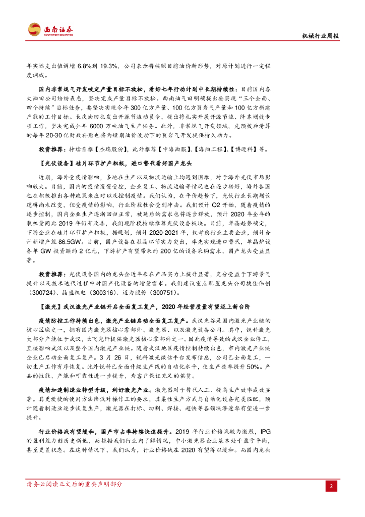 西南证券:机械行业周报:全面复工首推工程机械,看好油服、光伏中长期趋势.pdf