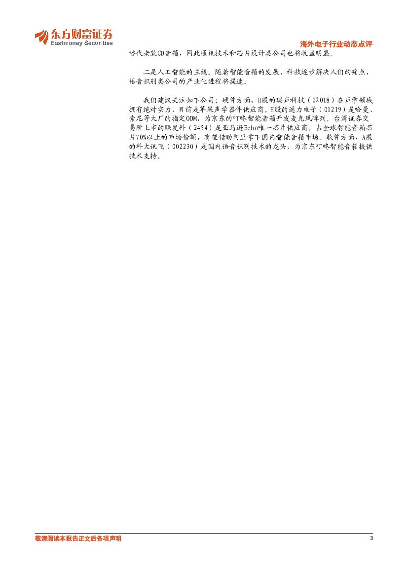 东方财富证券:海外电子行业动态点评:“天猫精灵”加入智能音箱大战.pdf
