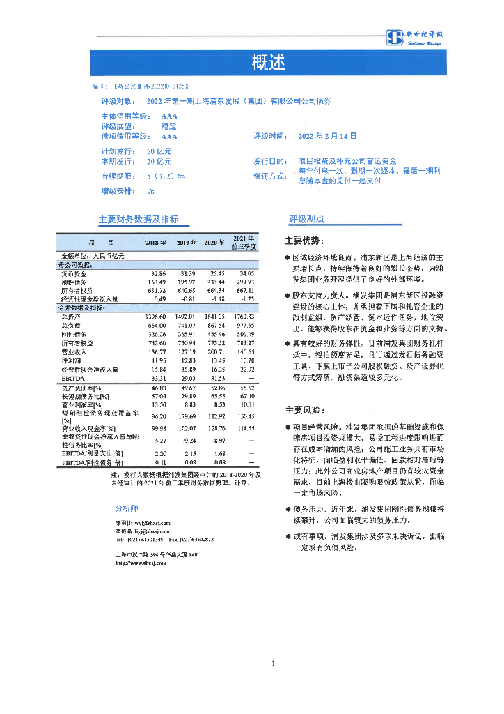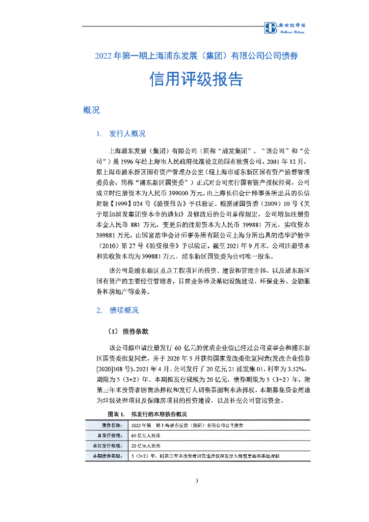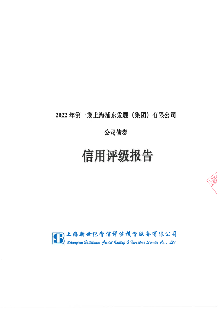 新世纪:2022年第一期上海浦东发展(集团)有限公司公司债券信用评级报告.pdf